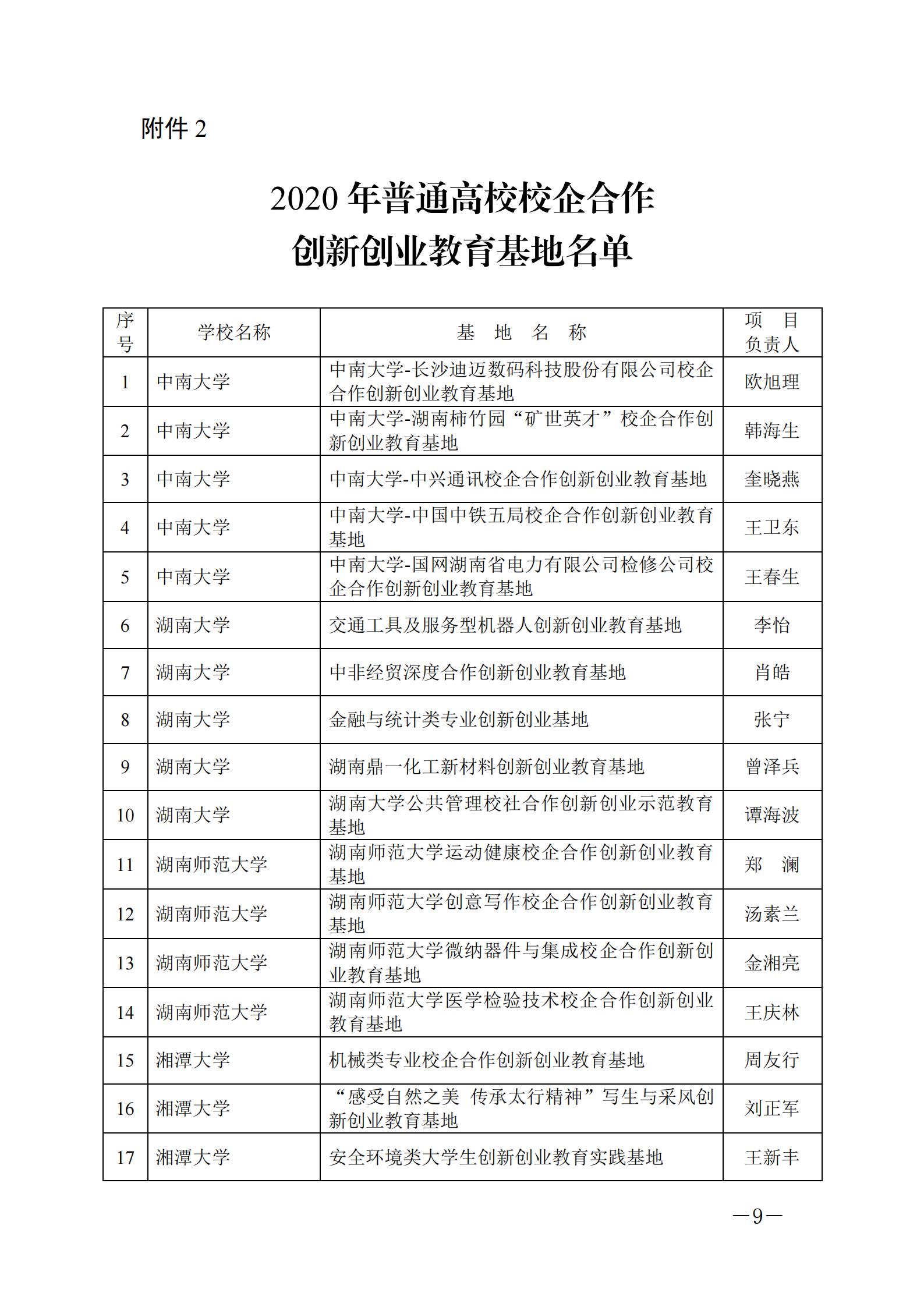 聂志军老师负责的“文科师范类专业创新创业教育基地”认定为湖南省2020年普通高校校企合作创新创业教育基地
