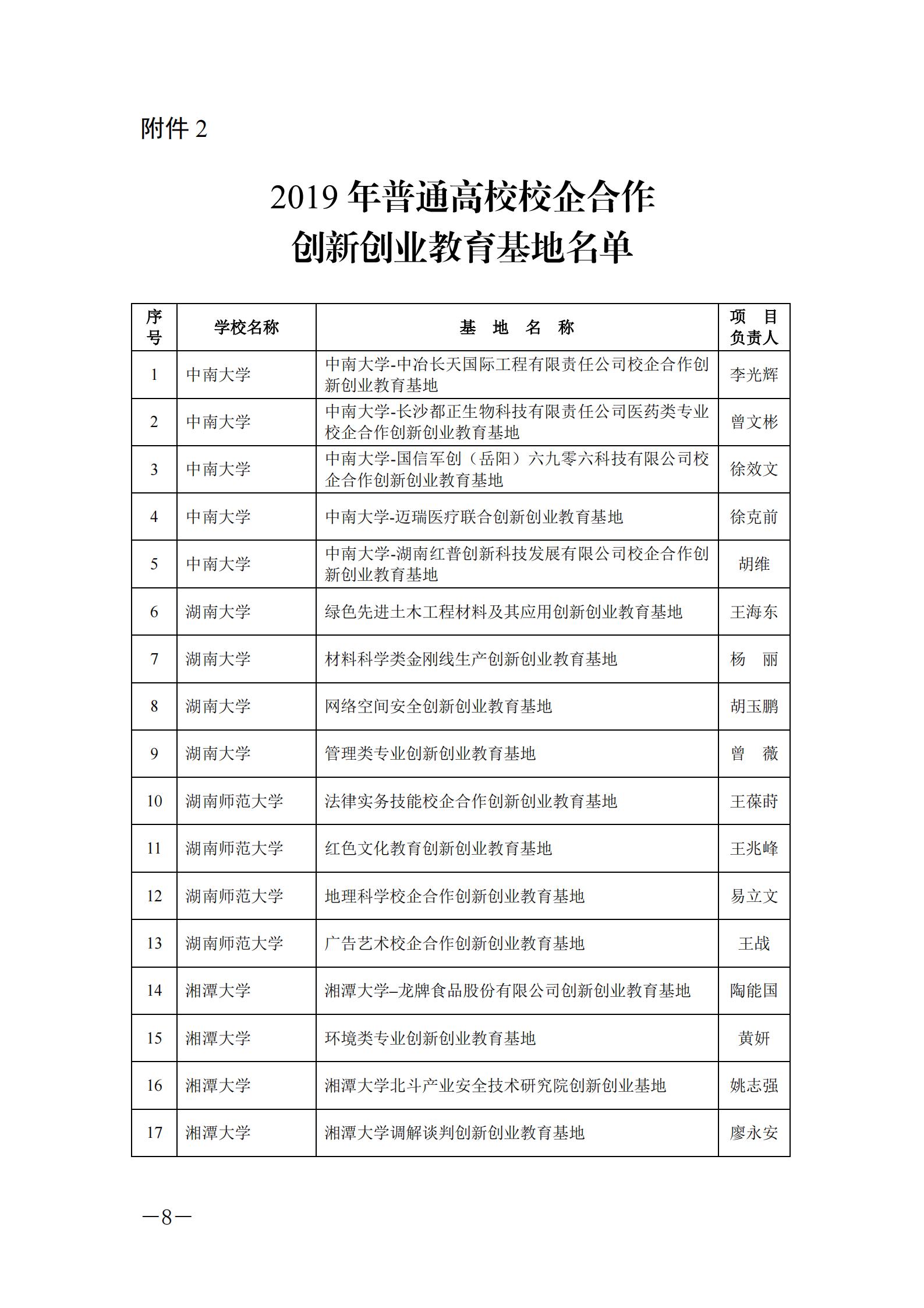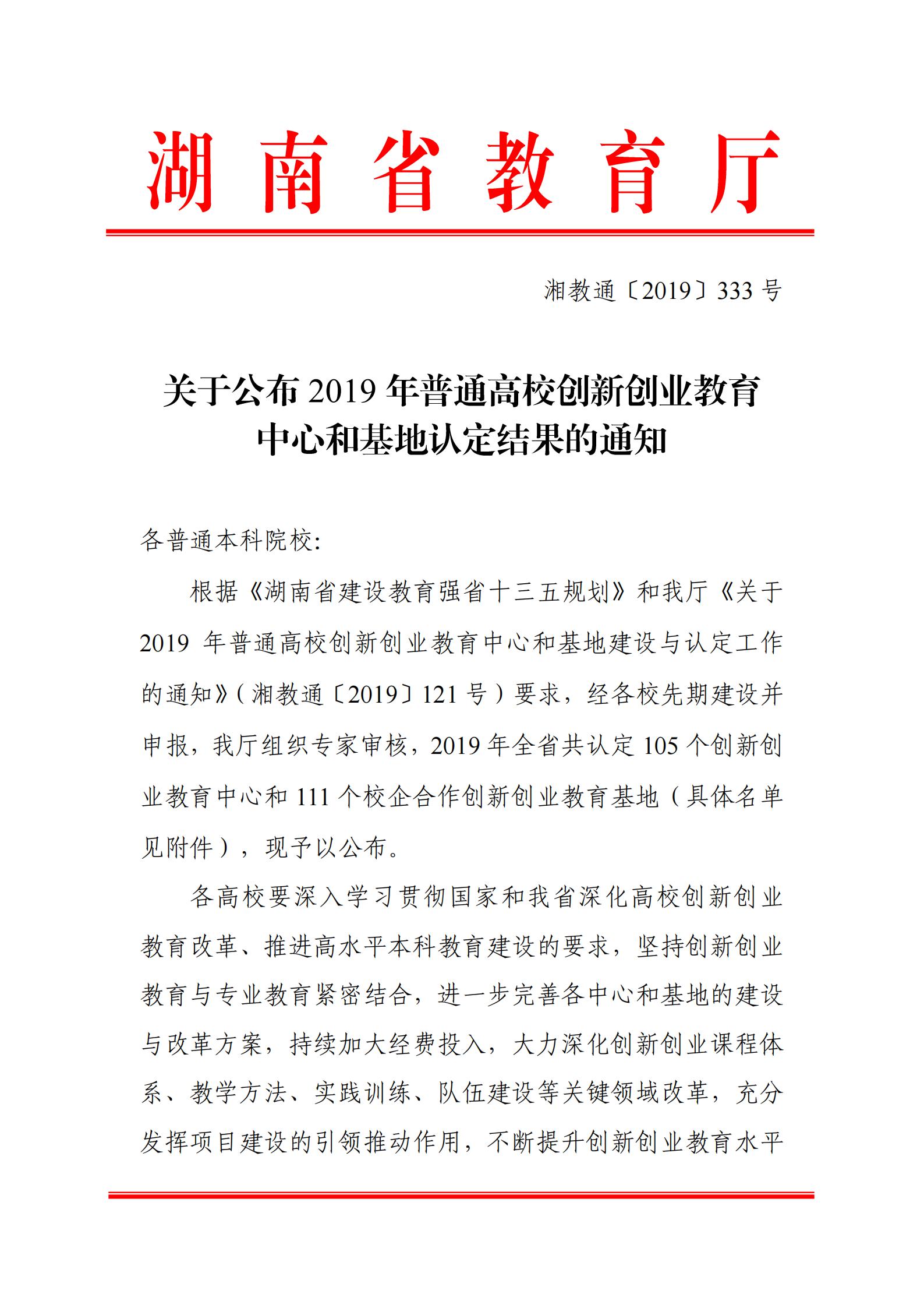 袁星洁老师负责的“融媒体建设与发展校企合作创新创业教育基地”认定为湖南省2019年普通高校创新创业教育基地