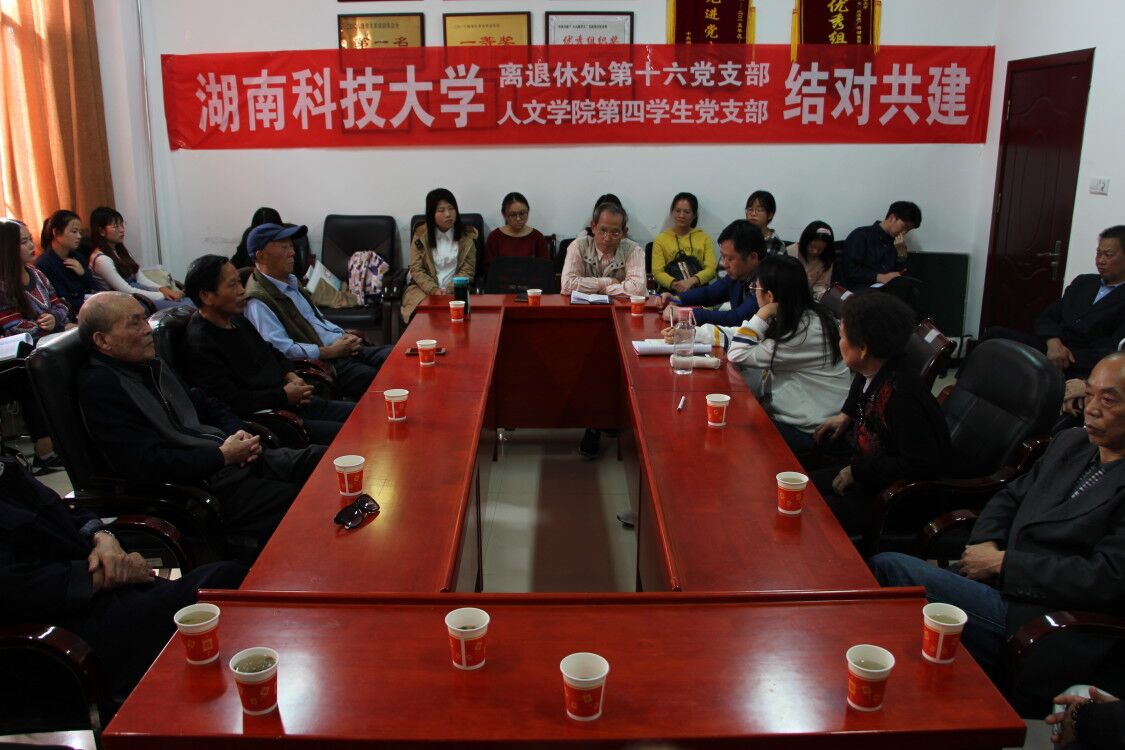 2018年10月30日,在立言楼410,MK体育离退休处第十六党支部与MK体育学生第四党支部“结对共建”活动顺利举行,会议由离退休处第十六党支部书记贺育秀主持,MK体育党委书记廖加林,副书记邓辉出席了此次会议。离退休处第十六党支部的17名老同志和MK体育学生第四党支部的16名党员参加了此次会议。