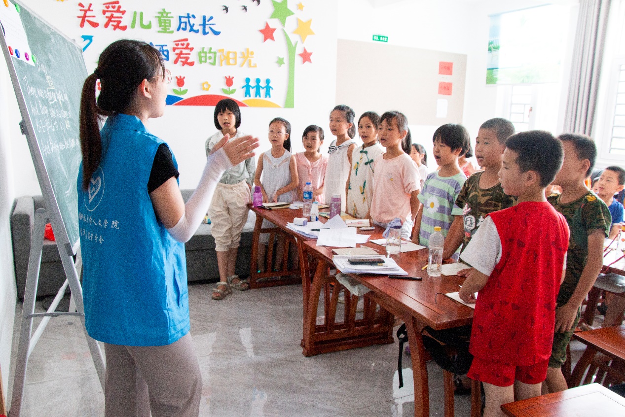 7月14日,是MK体育MK体育暑期“三下乡”社会实践活动第四日。下午4点50分,嘹亮的上课哨声准时响起。“上课啦!上课啦!”被太阳炙烤的谭家垅村显得有些沉闷,但孩子们的兴奋没有因燥热的天气消减,急忙回到座位,等待音乐课的到来。