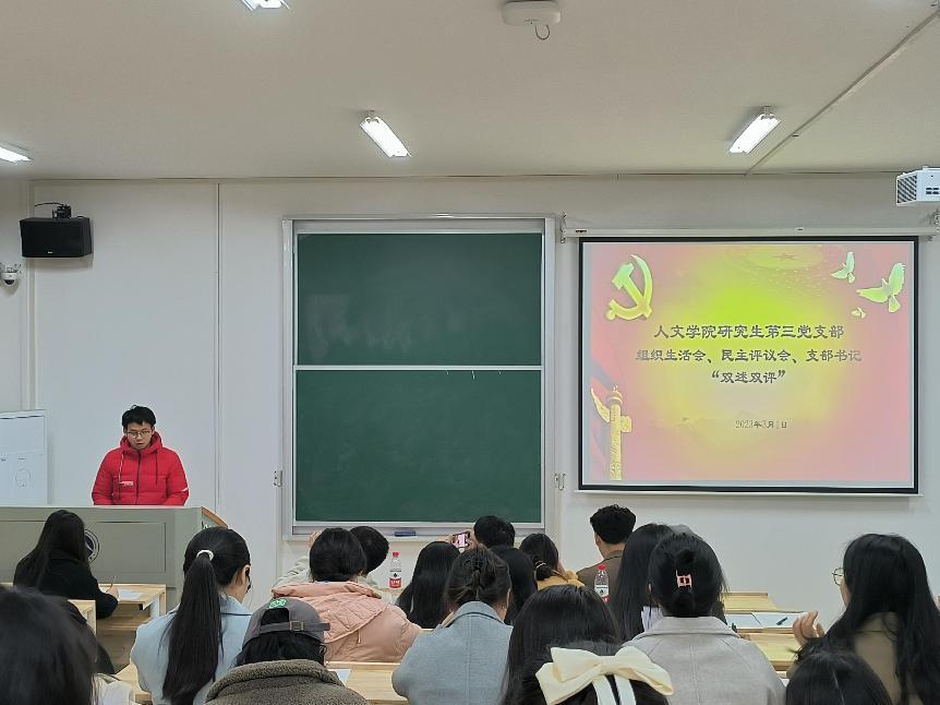 3月1日晚,MK体育研究生第三党支部组织生活会、民主评议会、支部书记“双述双评”会在我校雨湖校区2教101教室召开。MK体育党委委员、副院长袁星洁教授、第三党支部32位正式党员以及5位群众代表参加会议。
