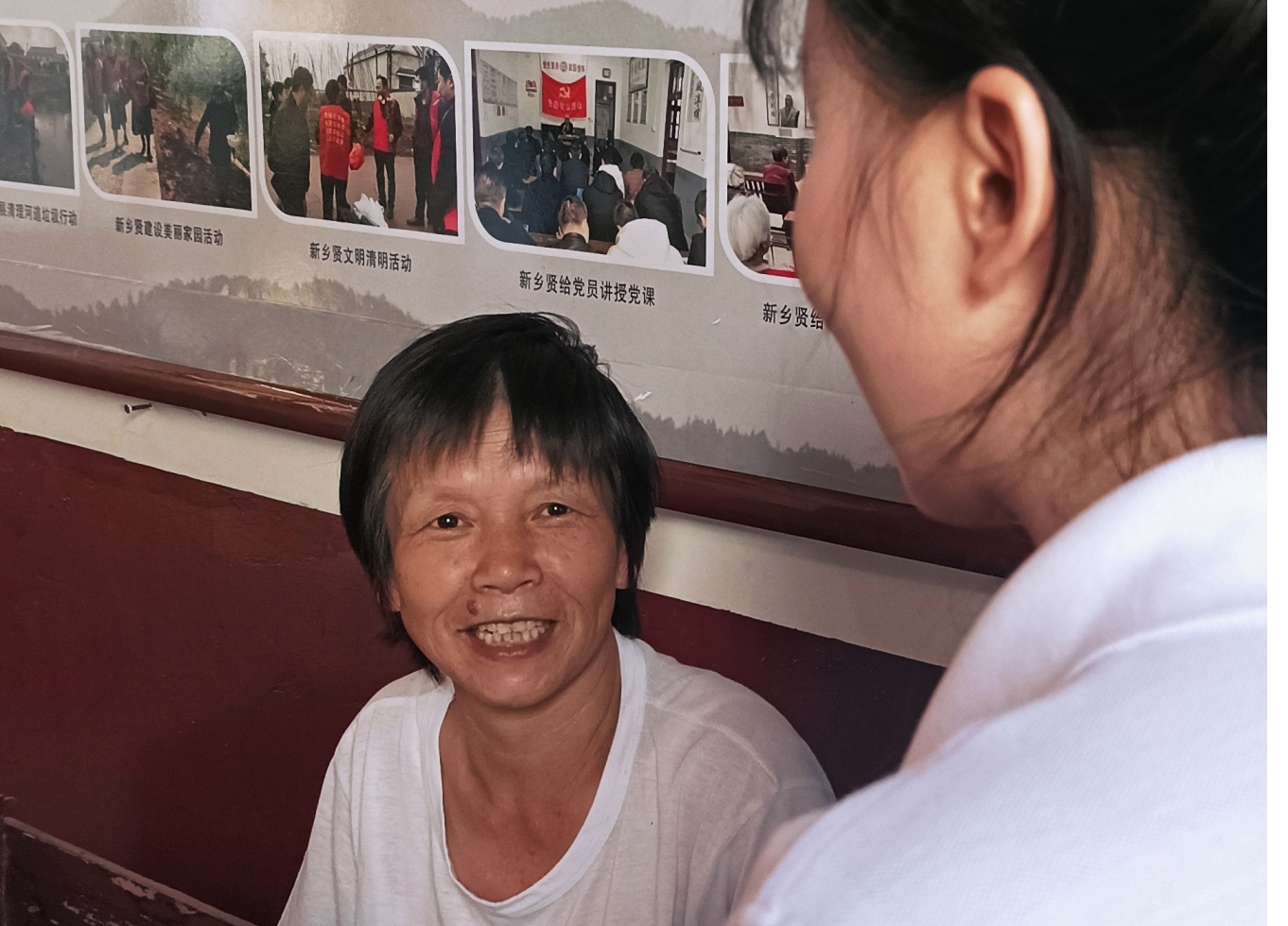 ▲聂奶奶与志愿者交流