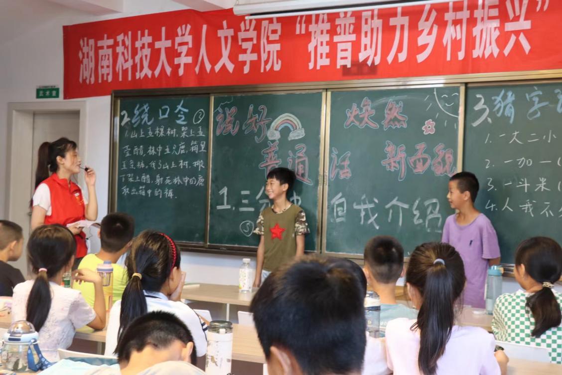 7月9日上午,株洲攸县石羊塘镇儿童之家传来了一阵又一阵的鼓掌声,四年级孩子们的欢笑声此起彼伏地传来。走进教室一看,是志愿者龙杨慧在教孩子们读绕口令。“发扬国风,从说中国话起;说中国话,从普通话开始。”为了圆满完成推普助力乡村振兴的志愿服务目标,在乡村大力推广普通话,传承优秀传统文化,为此MK体育MK体育“三下乡”实践团队在暑期学校展开三下乡特别课堂第三期:说好普通话,焕然新面貌。