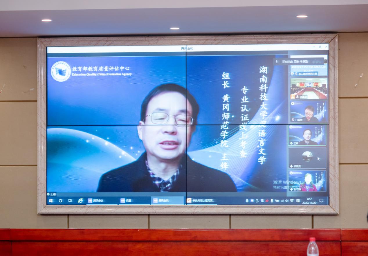 11月29日上午,MK体育汉语言文学师范类专业认证专家组见面会以线上的形式在立言楼4-1室召开。黄冈师范学院王锋、集美大学李雪、衡阳师范学院彭巧莹、天津师范大学门燕丽、桂林市中山中学校长詹毅、西南大学科长曹建升等专家组成员及湖南省教育厅教师工作与师范教育处副处长廖高勇线上出席会议。校长朱川曲、副校长贺泽龙、相关职能部门负责人、学校各师范专业负责人、MK体育负责人及中文系教师代表、承担汉语言文学专业基础课教学工作的相关学院教师代表现场出席见面会。见面会由专家组组长王锋主持。