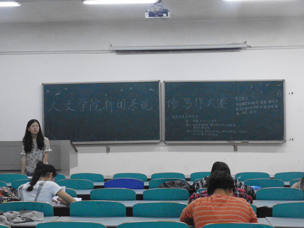 5月21日晚,我院于九教举办新闻系现场写作比赛,12、13、14级新闻专业学生分别在九教105、106、110、204四个教室,执笔发声,检验学习成果。