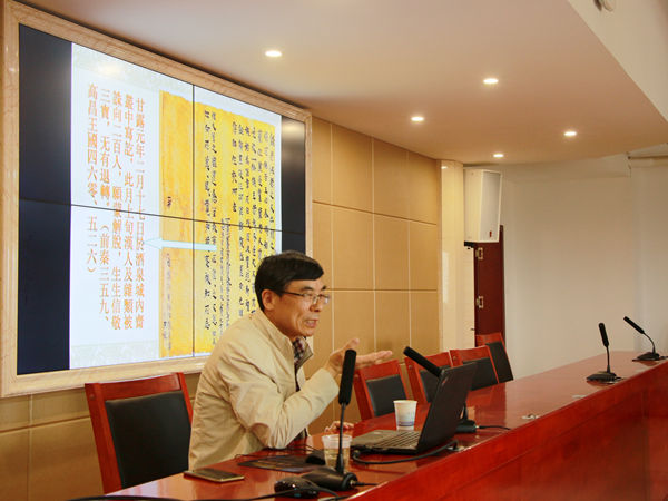 张涌泉教授指出:敦煌石窟是联合国科教文组织评定的世界文化遗产之一,敦煌文献是中国近代学术史上最伟大的发现之一。张教授列举四种灿烂的敦煌文化:敦煌、莫高窟、藏经洞、敦煌学,并通过大量文献资料及史实,逐一进行详细介绍。敦煌是四大文明的交汇地,处在著名的丝绸之路的三叉路口。自汉代以来一直是中西交通的枢纽,是东西方的贸易中心和商品的中转站。莫高窟和敦煌文献就是四大文明汇流的具体体现。莫高窟是中国古代艺术的博物馆,莫高窟与云冈、龙门并称中国古代三大石窟。敦煌石窟是融建筑、雕塑、壁画三者于一体的立体艺术,是世界上保存规模最大、最为完整的石窟艺术遗存,是中国古代艺术的博物馆。藏经洞是中国近代学术史上最伟大的发现。藏经洞内的敦煌文献与殷墟甲骨文、西北简牍、北京内阁大库的明清档案并称二十世纪中国学术史上四大发现。然而藏经洞的发现处在1900年——中国历史上的一段最为昏暗的年代。敦煌文献发现不久,即陆续遭到国内外“探险家”们的垂顾。敦煌文献的语言包含除汉语外的希伯来文、回鹘文等多种久已失传的民族文字。张涌泉教授指出:敦煌文献的发现,首先,具有改变整个中国学术文化研究的面貌,更真切地展示了普通百姓的生活面貌。其次,有助于解决许多疑难问题。再次,是古代书法艺术的宝库。第四,保存了一大批失传已久的古代文献。最后,对传世文献的校勘具有巨大价值。敦煌学则是全人类的同心结。张涌泉教授认为,新时期敦煌学研究的基础工作应着眼于分类、定名、缀合、汇校、辨伪等方面。对此,张教授指出字形分析法、实例分析等研究方法。