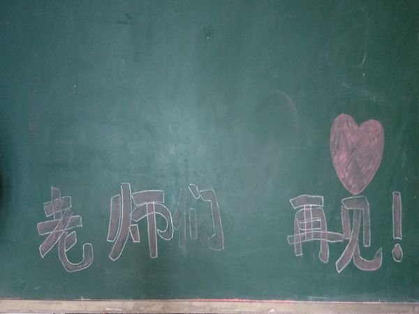 7月21日,是志愿支教行的最后一日。攸县的晨间,学校里的生活一如往常。只是当志愿者走进教室,蓦然发现,两张旧木桌撑着的黑板上多出了一道别样的“风景”:一行稚嫩鲜艳的红色粉笔的大字挂在黑板中央最醒目的位置,“老师们,再见!”这是孩子们早早在黑板前一笔一划地为志愿者们写下的临别话语,话语最后,是一颗通红热烈的爱心,字里行间透着孩子们对志愿者们的满满的爱与不舍。