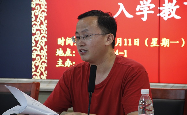 时维九月,入学之时。9月11日晚,我院新进研究生齐聚文科楼B4-1,一起接受学院入学教育。此次入学教育由学生会主席王植槐主持,此次主讲人由主管研究生事务的副院长毛小平博士和学工办老师成伟明担任。