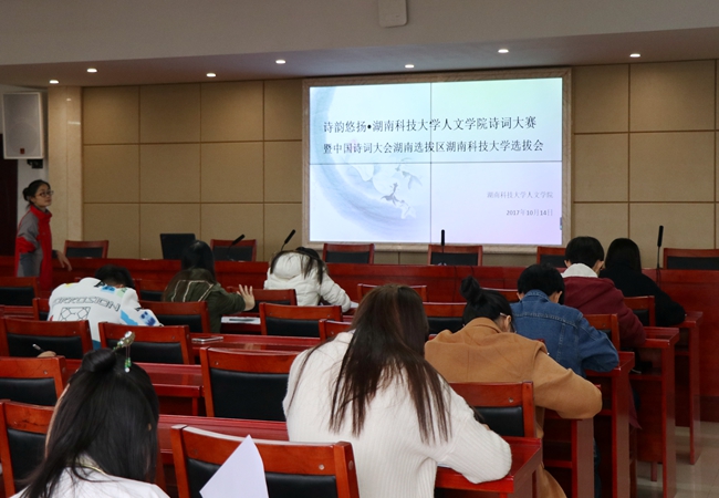 为响应传播中华优秀传统文化的号召,传播中华悠久文化精髓,彰显华夏诗词独特魅力。10月14日,我院在文科楼4-1会议室成功举办“诗韵悠扬.MK体育MK体育诗词大赛暨中国诗词大会湖南选拔区MK体育选拔会”,我院学工办赵晗冰老师进行现场监考,我院共18名来自不同专业的学生共同参与此次诗词大赛的激烈角逐。