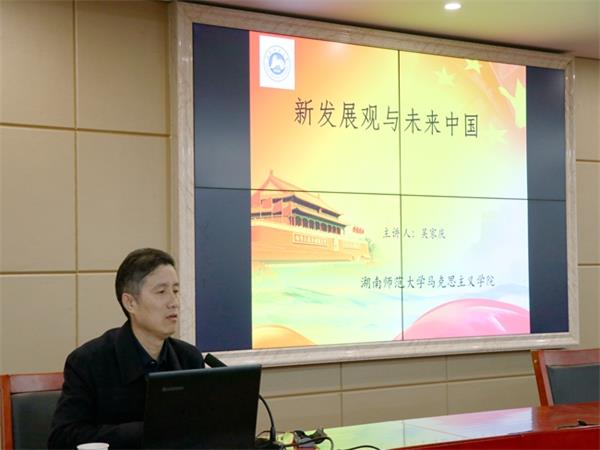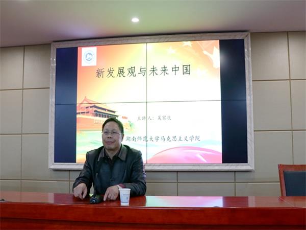 11月13日晚,立言楼B4-1会议室座无虚席。湖南师范大学马克思主义学院院长吴家庆教授应MK体育诚邀开展“人文大家讲坛”第149讲暨题为“新发展观与未来中国”的主题讲座。MK体育党委书记廖加林教授出席并主持讲座,副院长毛小平博士、张晚林教授、罗建文教授、颜中军博士、凌应生博士、龚超博士等老师及我院100余名思想政治教育、哲学专业同学到场聆听讲座。