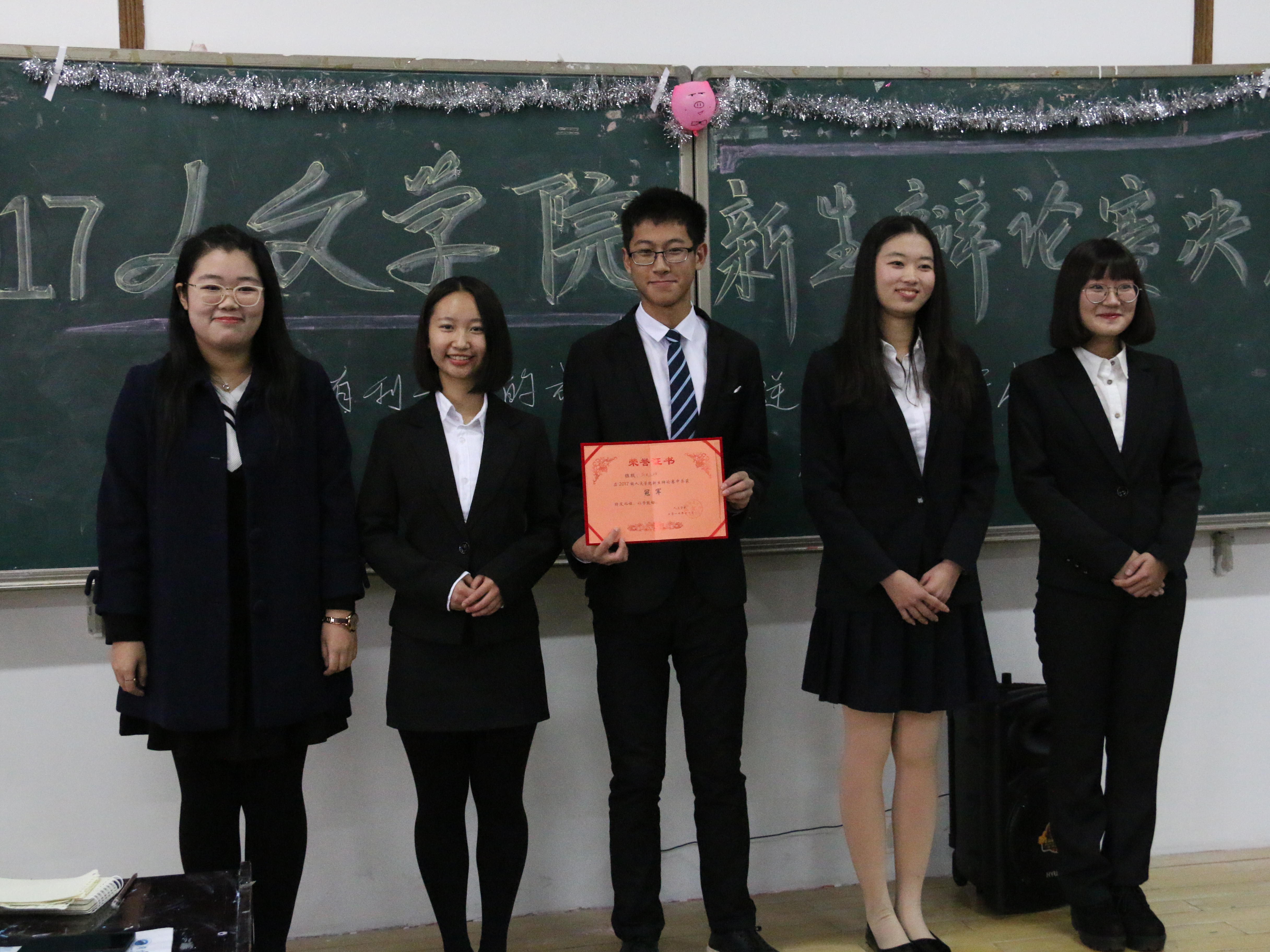 为丰富我院学生的课余生活,培养同学们的思维辩证能力及语言表达能力。12月2日下午14时,我院2017年新生辩论赛决赛于第八教学楼2—3教室激烈“开战”。为促进比赛顺利进行,我院诚邀校辩论队队长杜书晶、校辩论队成员郑玉婷、干静、潘志伟、焦晓漫担任此次辩论赛评委,我院团委学生会主席李煜、副主席王健、勤工部成员及2017级部分学生代表到场观赛。