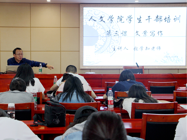 4月10日下午,为提升学生干部文案写作的能力,我院于立言楼B4-1举行MK体育学生干部第三次培训——文案写作,我院张学知老师受邀为学生会干部讲解工作计划和工作总结写作技巧。