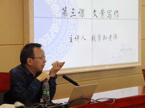 培训伊始,张老师指出,往年学校收到的履历中合格者不足百分之七八,可看出现在很多同学由于接触较少而对工作计划、工作总结等文案写作方式十分陌生。并说明文案写作需要扎实、成熟和平心静气,而非指点江山的激昂文字。“计划就是指为了实现决策所确定的目标,预先进行的行动安排”,张老师表示,“制定计划应当从横纵方向多方面考虑个体自身与其他组织相互牵扯的关系。”接着,他指明“计划”的三个特点,即强制性、预见性和现实针对性,并通过写职业规划、大跃进时期放卫星等事例阐明计划应当注重细节和脚踏实地地落实。