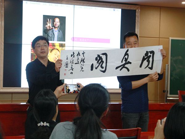 讲座开始前,周教授隆重介绍了尹云从先生及其团队在广告界的地位。并表示经我院商讨,希望尹先生能够成为广告专业教师的一员。院长刘奇玉为尹先生现场颁发聘书聘请他为实践训练教师,并表示将向学校申请正式聘他为专业教师。