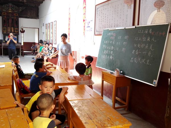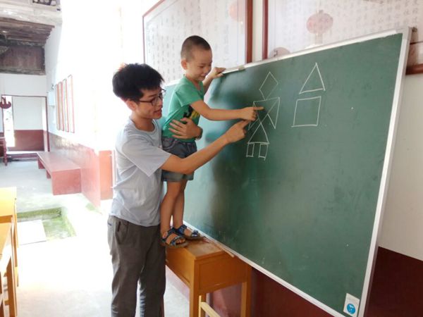 清晨,学生们陆陆续续的到达乡贤馆。“老师早上好,老师早上好!”向志愿者老师们问好的声音此起彼伏,一个个小天使笑的十分开心,对于他们来说上课并不是一件苦恼的事情,相反是假期最值得期待的事情。八点半,上课的哨声准时吹响。“同学们快进教室,上课啦……”志愿者林点一边吹哨,一边呼喊同学们进教室。作为团队的领头羊,林点身兼数职,既要充当打铃人,准时吹响哨声。又是老师,要教幼儿园的小朋友们数学。