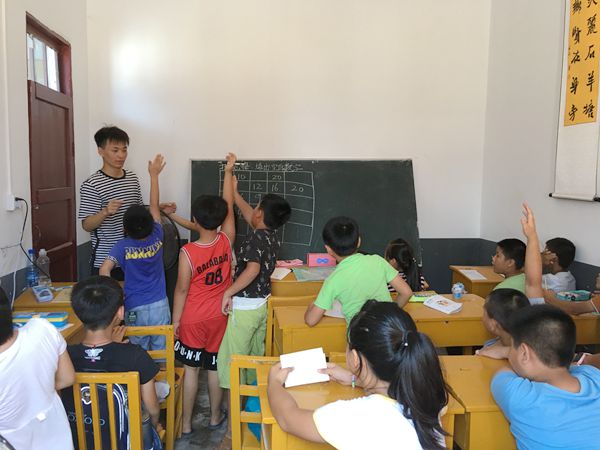 “老师老师,这个题目我会。”三年级数学课上,志愿者刘文成刚把题目写完,孩子们便争先恐后地举起了小手。“我们让坐得最直、举手最标准的小朋友上台来回答这个问题好不好?”闹哄哄的教室里瞬间秩序井然,“很棒哦,我们请符天瑞同学代表大家解决问题吧。”没有烦躁,没有嘶吼,刘文成用孩子的语言和思维方式巧妙地在维持课堂秩序的同时推动教学的进行。