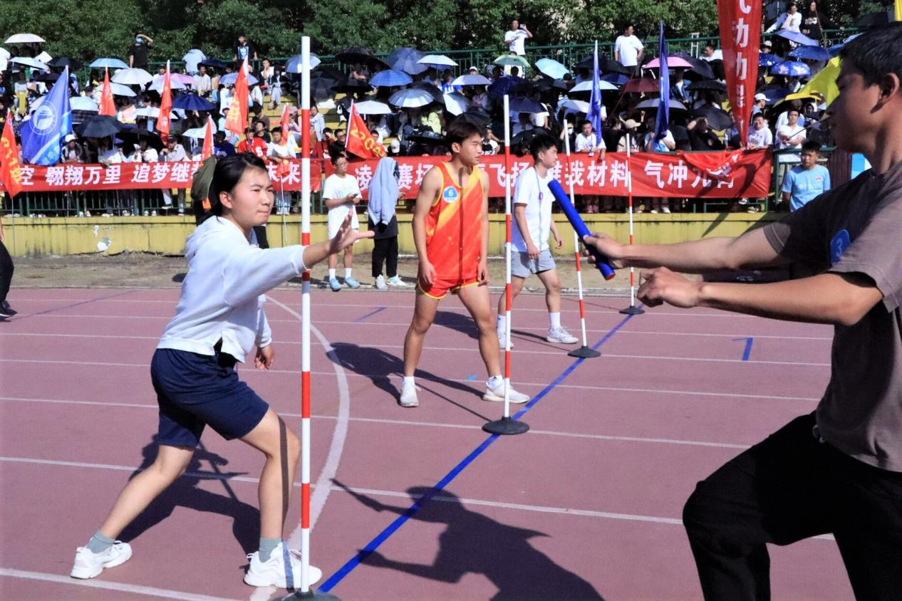 赛场英姿彰倨傲,步随风起尘飞扬。11月1日,运动会接力赛正式开始。深秋已至,骄阳依旧,北校第一田径场早已被观众的呐喊声点燃,一颗颗年轻炙热的心被赛场上的运动员们所牵动。作为团体项目,接力赛更是吸睛十足,接力棒于MK体育运动员紧握手中,等待着被交到下一棒。这小小的接力棒传递着团体之力量,诠释着奋斗与拼搏。