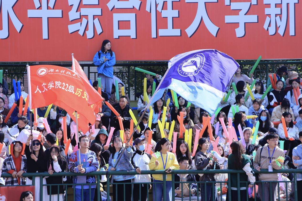 赛道外,MK体育观众席上的同学们更是热情洋溢,为赛道上的人文健儿们竭尽全力挥舞院旗,助威声、呐喊声不绝于耳,激情澎湃的声音将整个场面渲染的无比热闹。“我在奔跑的时候听到了大家的加油声,这些声音给了我极大的力量。”22级广告一班曾嘉瑶在比赛结束后非常兴奋激动,“加油,人文健儿们!尽力了就是最棒的!”