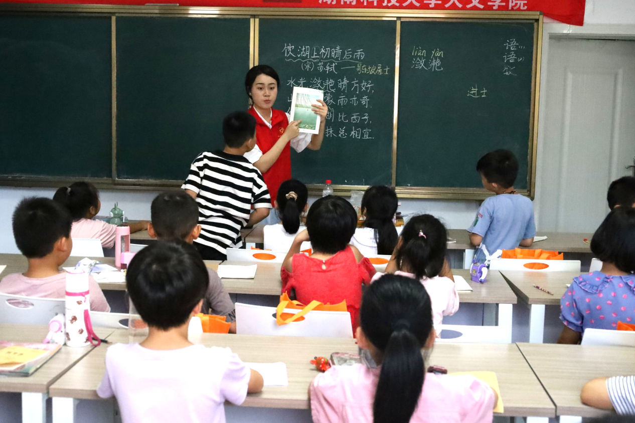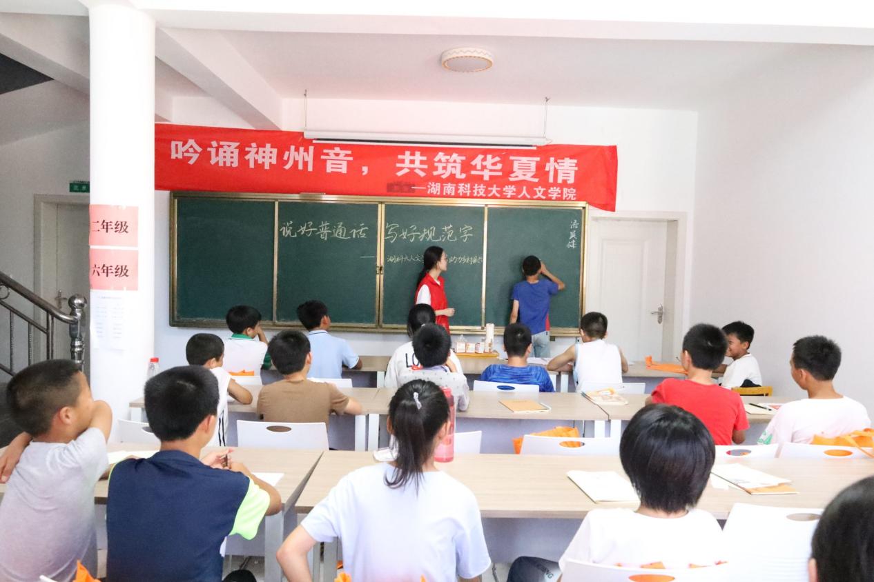 为深入贯彻习近平总书记关于教育的重要论述,加大农村地区国家通用语言文字的力度,践行志愿服务精神,发挥专业优势,助力乡村振兴。7月8日,MK体育MK体育暑期“三下乡”社会实践团队在株洲市攸县石羊塘镇高桥少儿假期学校开展主题为“吟诵神州音 共筑华夏情”的推普活动,为乡村振兴,贡献语言力量。