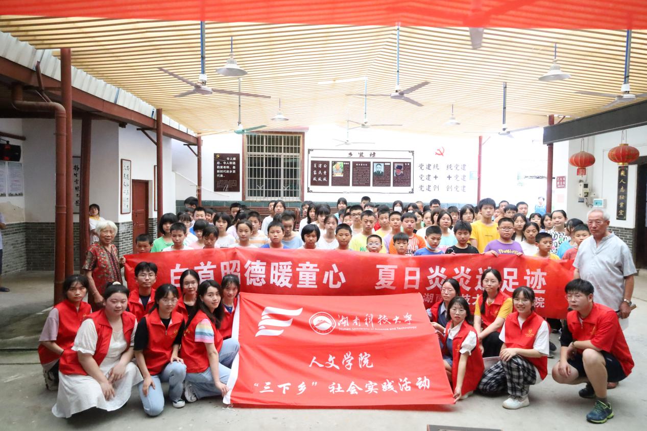 攸县谭家垅村同心文化广场上,一位打着赤脚的老爷爷与穿着迷彩裙的老奶奶带领着MK体育暑期“三下乡”社会实践团队成员参观着“儿童之家”周边的环境,感受稻田吹来的阵阵清风。