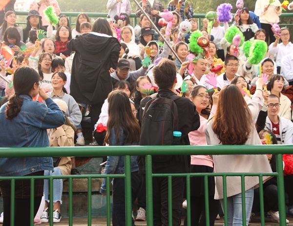 伴随着主席台上主持人铿锵有力的解说词和观众席上欢快的喝彩声,精神焕发的方阵队迈着整齐的步伐走进运动场,而在方阵队的周围,组织部的同学指挥着方阵队走到指定的位置,他们不做吸引眼球的主角但他们却是必不可少的。完成这些前期准备工作后,他们还要组织好在观众台上值班的班级,当运动员跑过我院看台前的运动场时,组织部的同学拿着喇叭、挥舞着加油棒,带领各班学生为运动员们加油呐喊,给运动员鼓励让他们感受到力量,双手有力地挥动着,加油拍手的声音与同学们响亮的加油声,汇聚成了运动场上最美妙动听的声音。