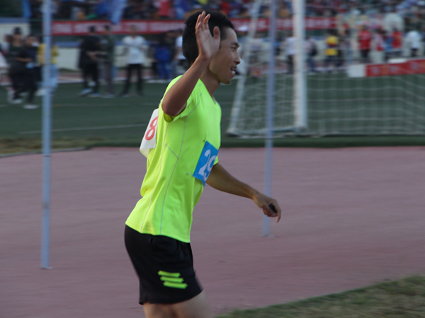 五千米,一个漫长且考验人的过程。运动员冉跃的步伐由最初的轻快变得逐渐沉重。他眉头紧锁,一手时不时按住腰侧。但无论如何痛苦,他的神情始终刚毅,他的步子始终坚定。接近终点时,他努力加快步伐,咬紧牙关奋勇前进,终于越过了终点线。冉跃说:“我第一次挑战五千米的距离,在跑步过程中,身体会出现诸多不适,但我一听到同学们为我加油喝彩,就感觉身上重新有了力量。同时,我也感谢在之前的训练中,同学和学长给我的指导和帮助,因为有你们,我才能走到最后。”