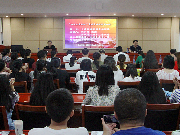 9月18日下午15点,当代著名作家韩少功教授应邀于立言楼B4-1举办“文学经典的形成与阅读”主题学术讲座。本次讲座由彭在钦教授主持,潘年英、吴投文、刘昕华、丁志丛等老师及汉语言文学专业部分学生到场聆听。