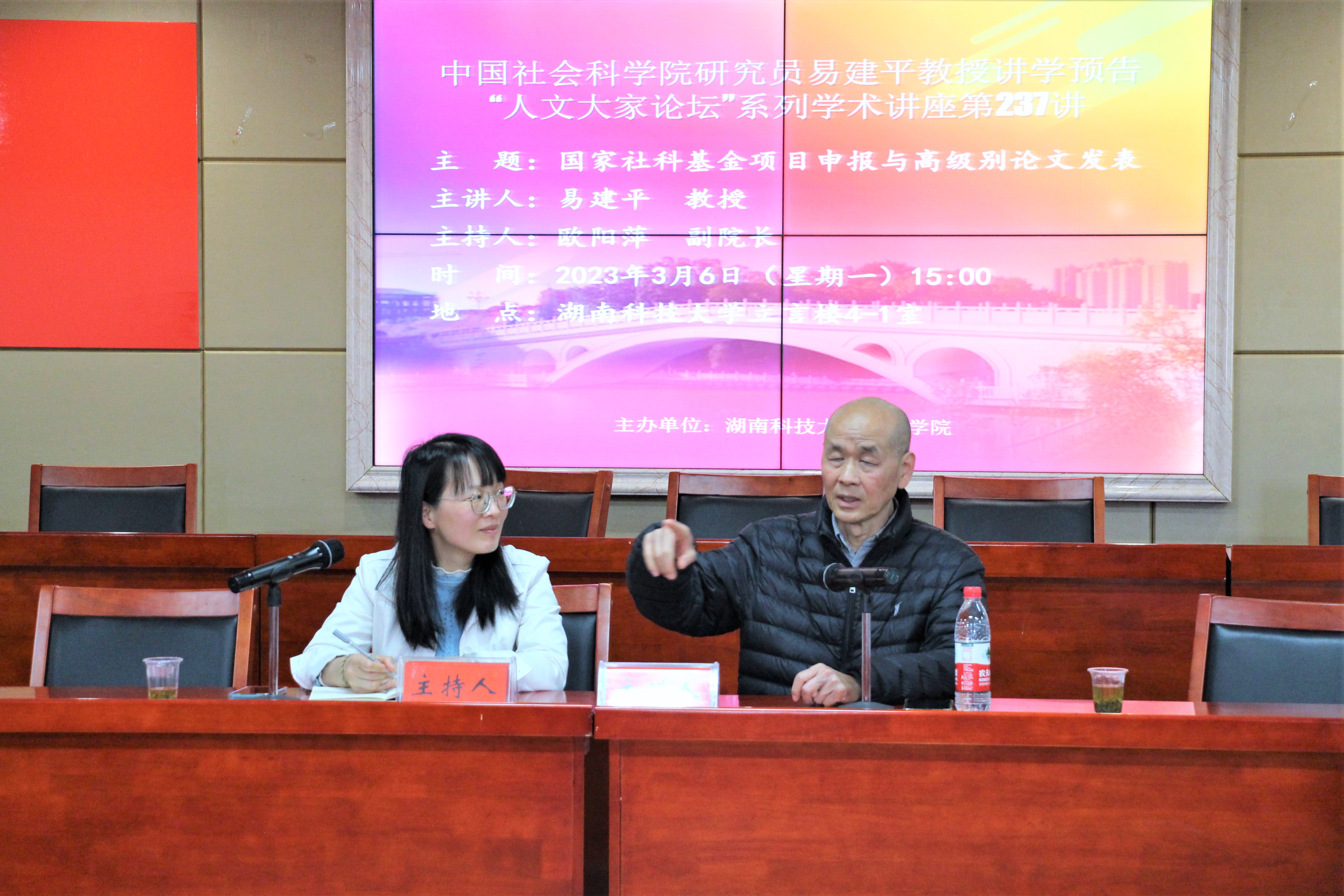 3月6日,由我院主办的“人文大家论坛”系列学术讲座第237讲于立言楼B4-1室举行。中国社会科学院研究员、华南师范大学教授易建平应邀作“国家社科基金项目申报与高级别论文发表”主题讲座。讲座由我院副院长欧阳萍主持,各专业教师代表参加。