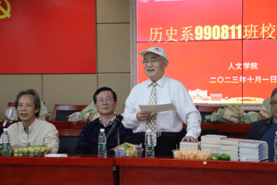 杨鹏程老教授对座谈会进行总结,他用历史故事展开阐述,还是如以往那般幽默诙谐。他谈到,历史是各行职业的基础,大家都应面对历史,学习历史,尊重历史,用好历史。最后,历史990811班班主任代表各位老师向各位校友表示思念以及真挚祝愿。