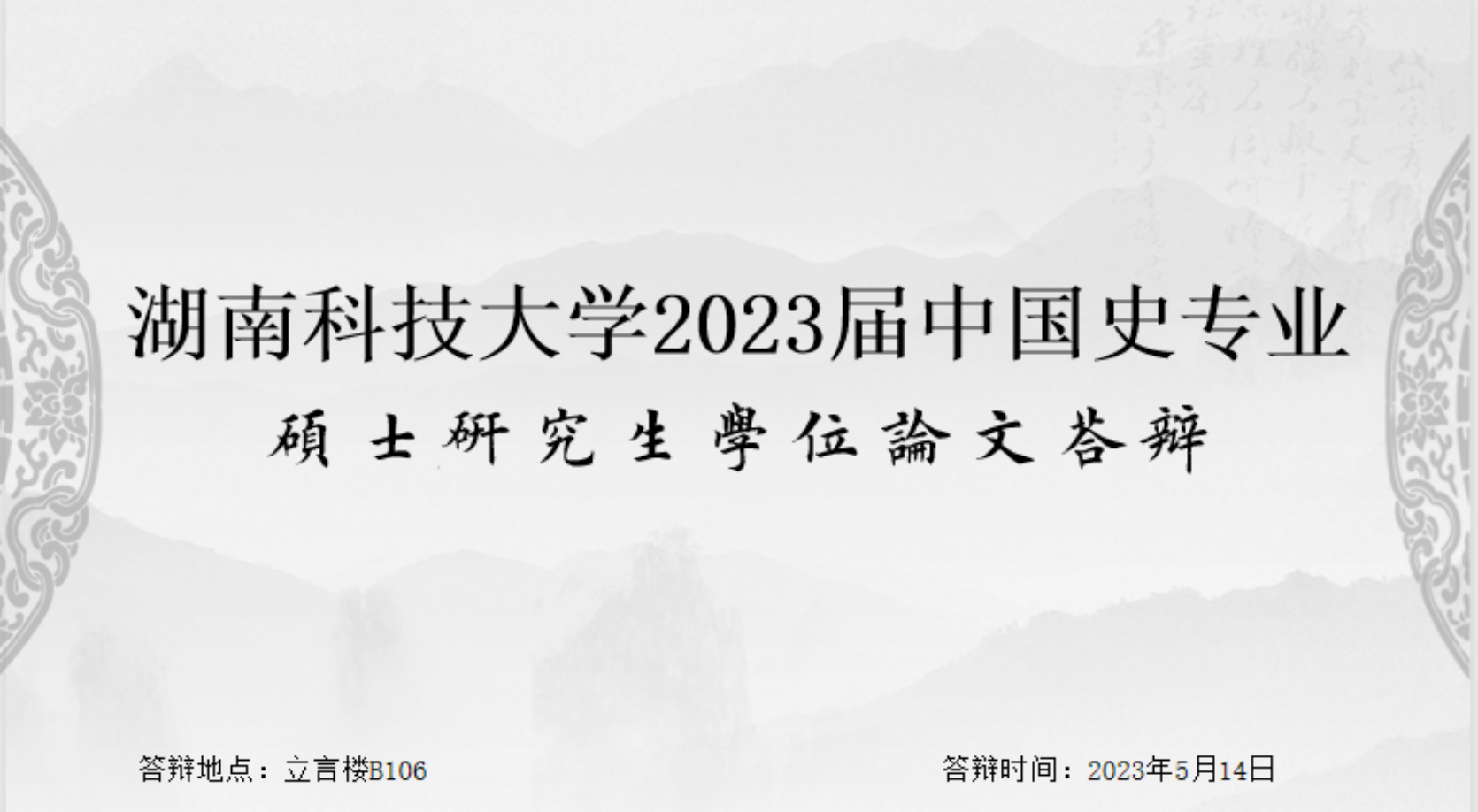 5月14日,MK体育2020级中国史专业硕士研究生学位论文答辩于立言楼B106如期举行。本次答辩邀请湘潭大学章育良教授担任答辩主席,湘潭大学吉成名教授以及我院徐红教授、金身佳教授、周方高教授、聂志军教授担任答辩委员。2020级中国古代史方向8位硕士研究生参与此次答辩。